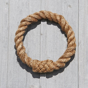 Made from a single ply of 2" Rope, wound around itself to relay into a continuous loop, we cover the two ends with a fancy turkshead to complete the look. All our wreaths come unadorned.